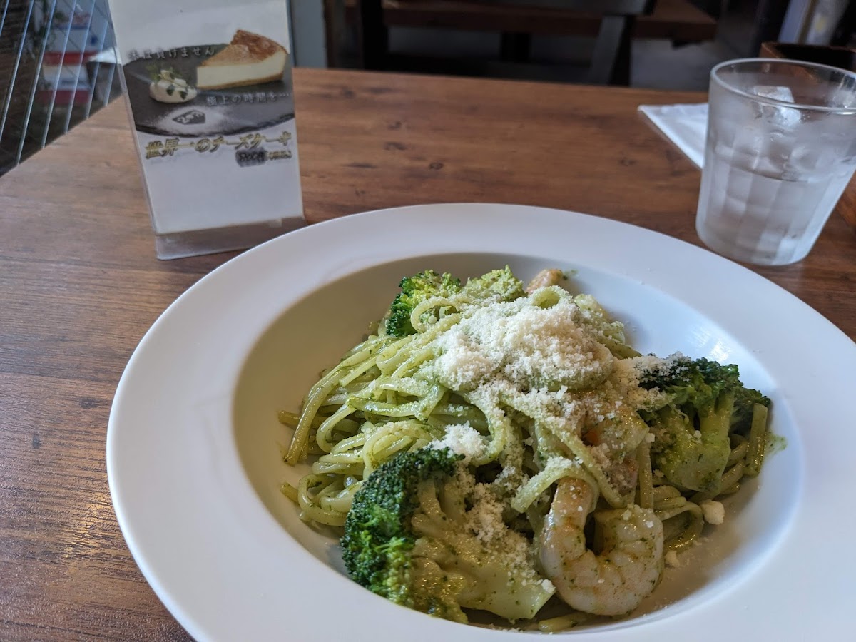 If you’re in the mood for something more substantial, the ジェノベーゼ (genovese) is a fantastic choice. Bursting with plump shrimp and generous broccoli, this dish showcases the vibrant aroma of basil alongside the delicate chew of fresh pasta. Combining flavor with exceptional presentation, it’s complemented perfectly by your choice of refreshing iced coffee.